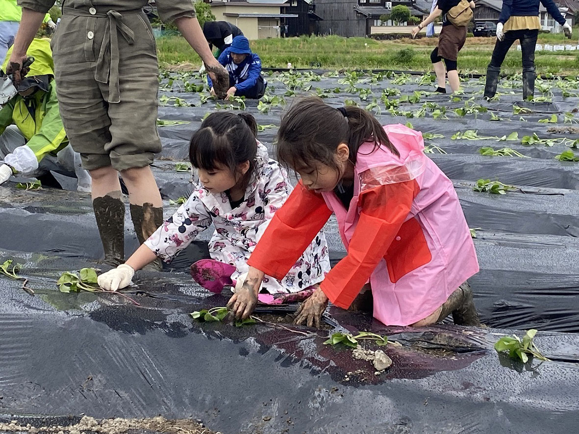 今回のイベントには、子供やその保護者など104名が参加し、水稲(コシヒカリ)とサツマイモの植付け体験を行いました。小雨が降る悪天候にもかかわらず、参加者の皆様はにぎやかで楽しい時間を過ごされました。