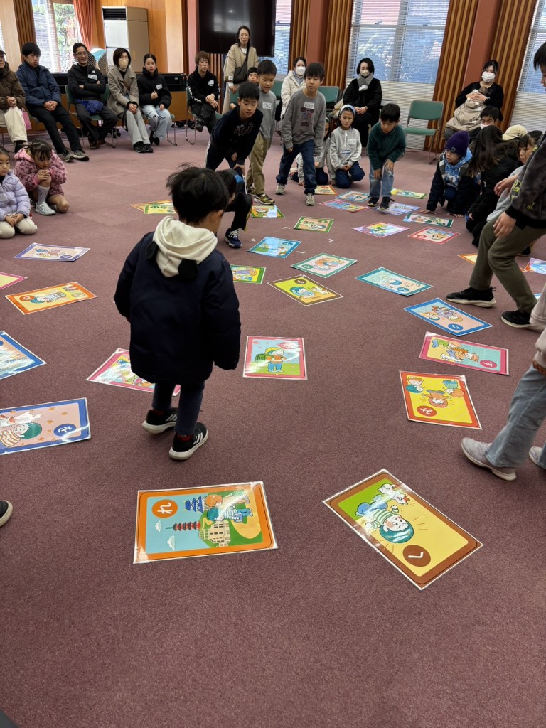 また、同施設内の芝生広場を利用して、「心を育てる巨大かるた大会」や「じゃんけん列車」などのレクリエーションも行い、子供たちは体をいっぱい動かしながら、元気いっぱい楽しみました。